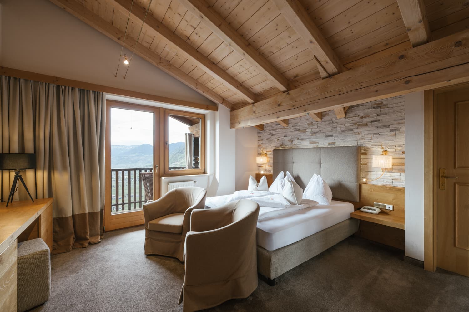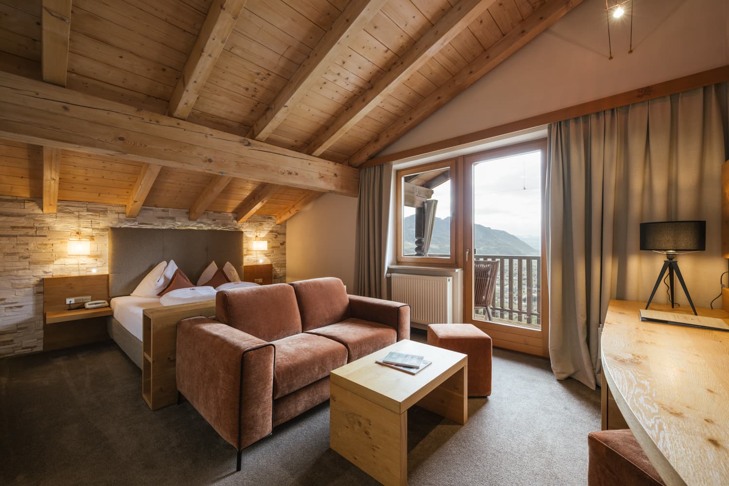 "Das Hotel liegt traumhaft hoch oben zwischen den Schlössern Tirol und Thurnstein und man genießt einen Panoramablick auf das benachbarte Dorf Tirol, über Meran und Algund, das ganze Tal und die umliegende Bergwelt. Unser Zimmer war sehr großzügig, mit Schlaf- und Aufenthaltsbereich."