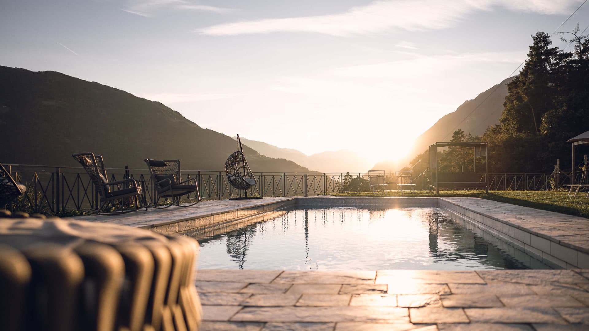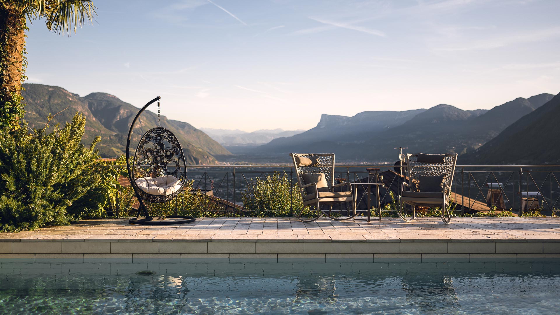 Vor der traumhaften Kulisse des Meraner Talkessels genießen Sie zu jeder Jahreszeit Lebensfreude und Wohlbefinden – vom sonnigen Pool mit Ausblick bis zur mediterranen Küche und herzlichen Südtiroler Gastfreundschaft.